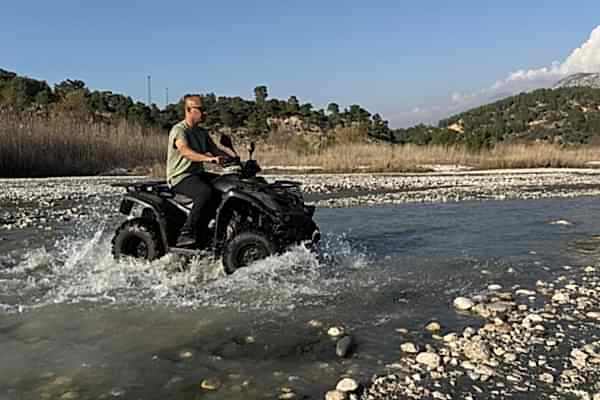 Kaş Kalkan Atv turu hergün yapıyoruz. Atv lerimiz yeni ve güçlü motora sahiptir. Kaş ve Kalkan tatilinize heyecan katmak isterseniz Atv safari turuna katılmalısınız. Atv turu Saklıkent ve Gizlikent kanyonlarından doğan Eşan nehri kıyısında yapıyoruz. Özel olarak hazırlanmış parkurda unutulmaz bir aktivite sizleri bekliyor.